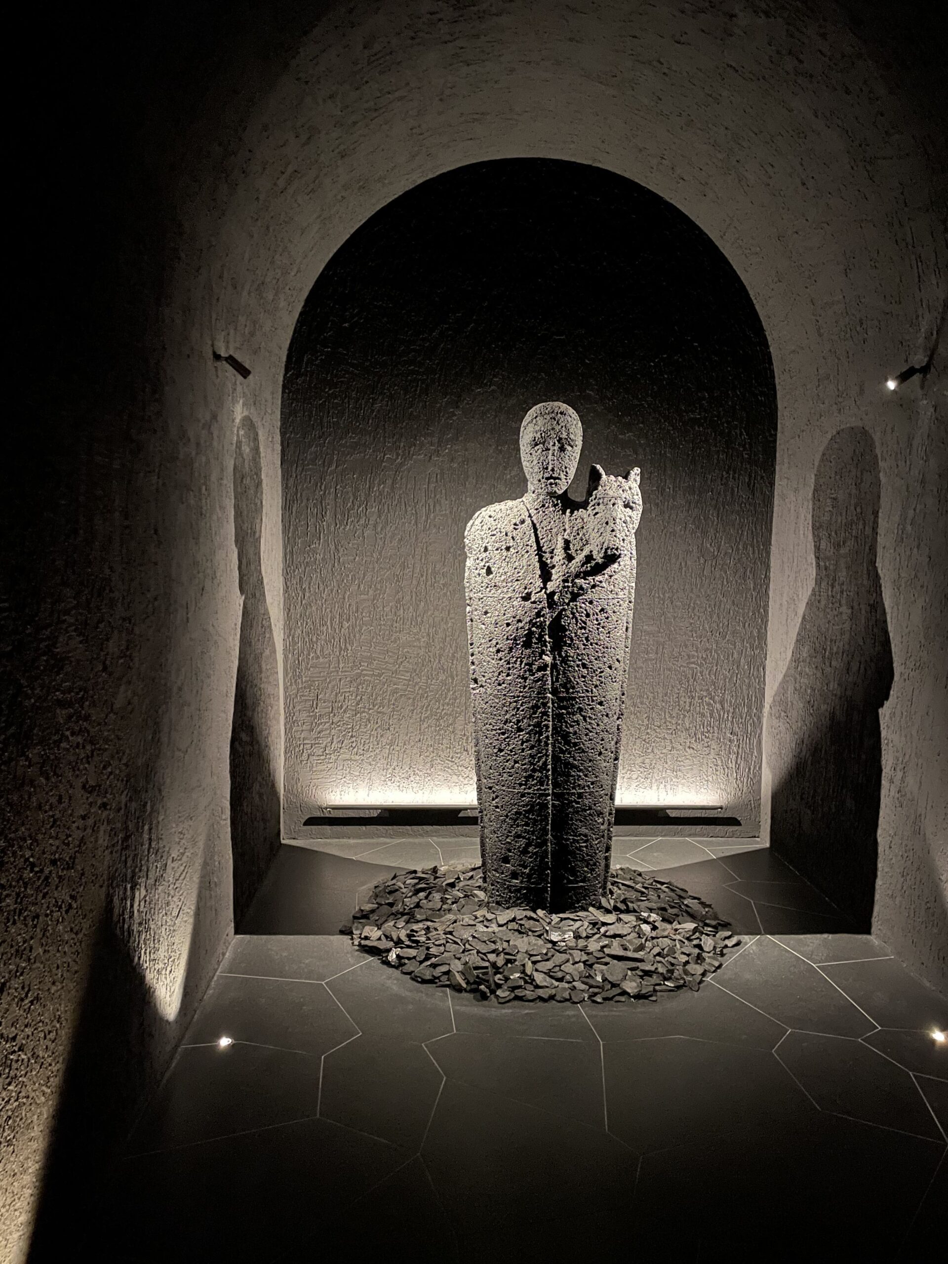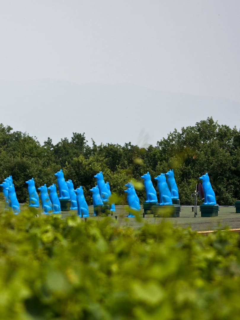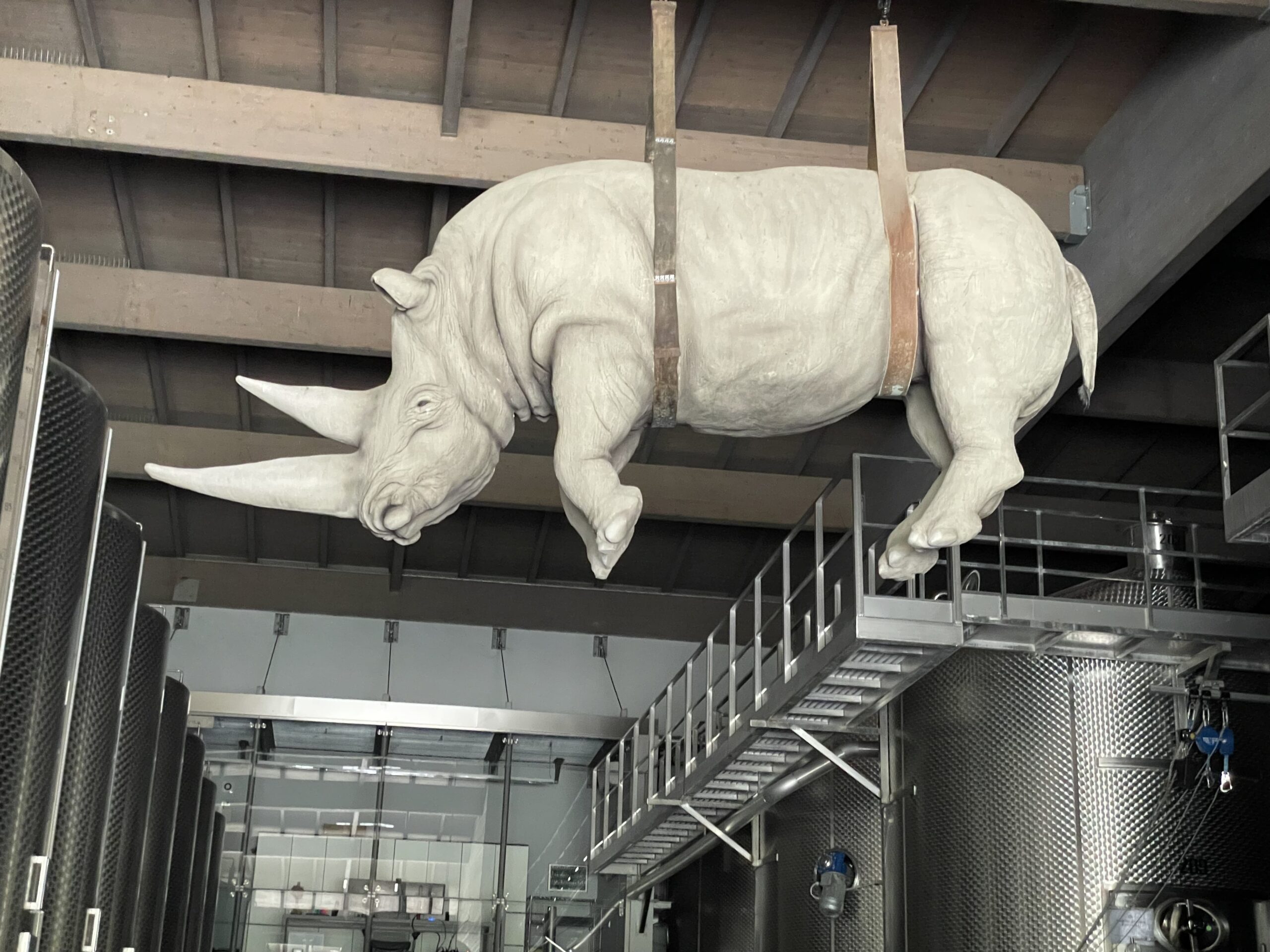 Le sorprese continuano all’interno con il rinoceronte de “Il Peso del Tempo Sospeso” di Stefano Bombardieri, posta all’entrata dell’area vinificazione della cantina. “Water in Dripping” di Zheng Lu, posto ad abbracciare la cisterna madre, ispirato ad un poema sul viaggio dell’acqua, ma che mi piace pensare rappresenti la vitalità prorompente delle bollicine del Franciacorta. Una specie di guardiano ispirato ai numi tutelari della casa degli antichi è “Testimone” di Mimmo Paladino.