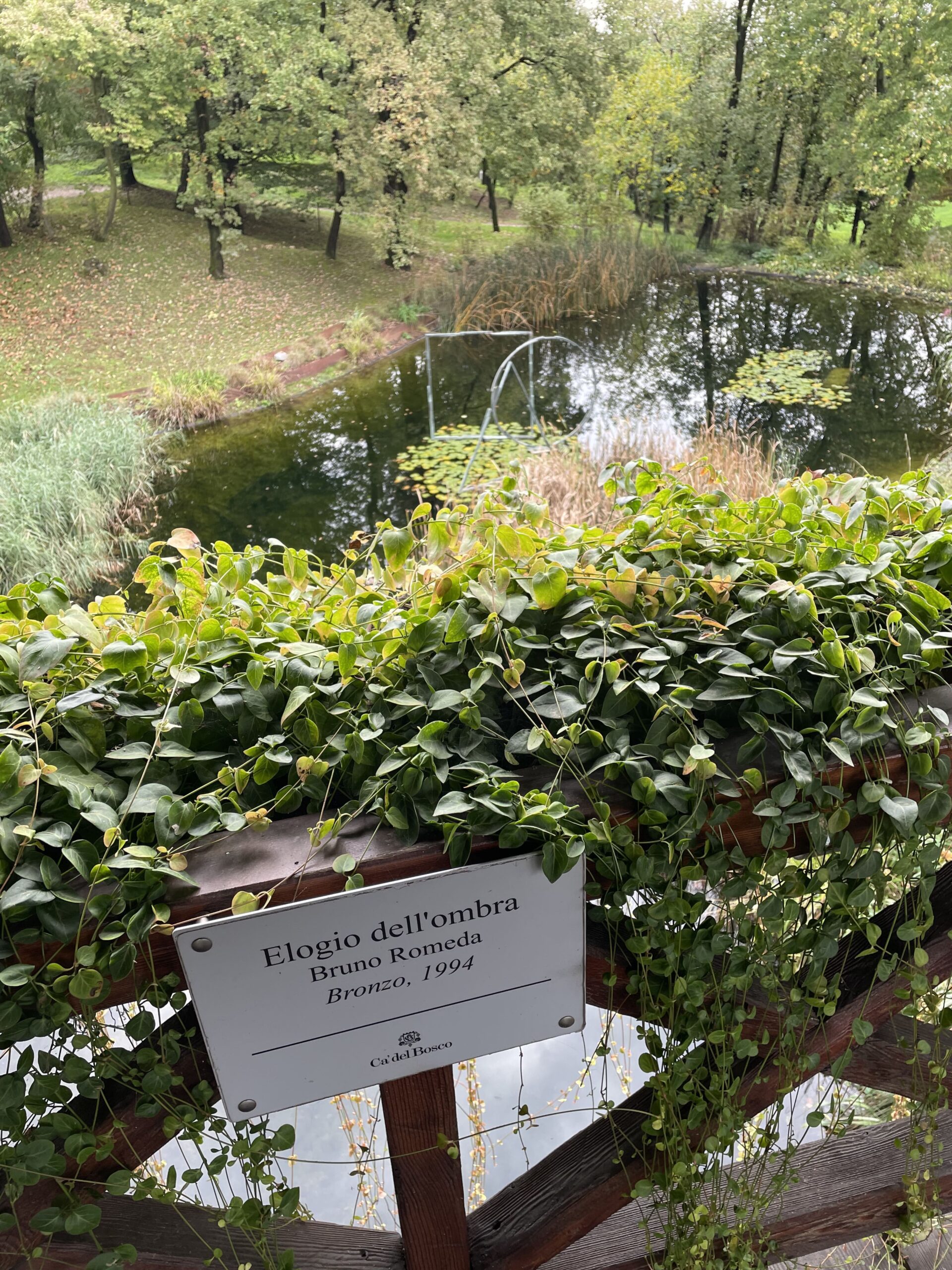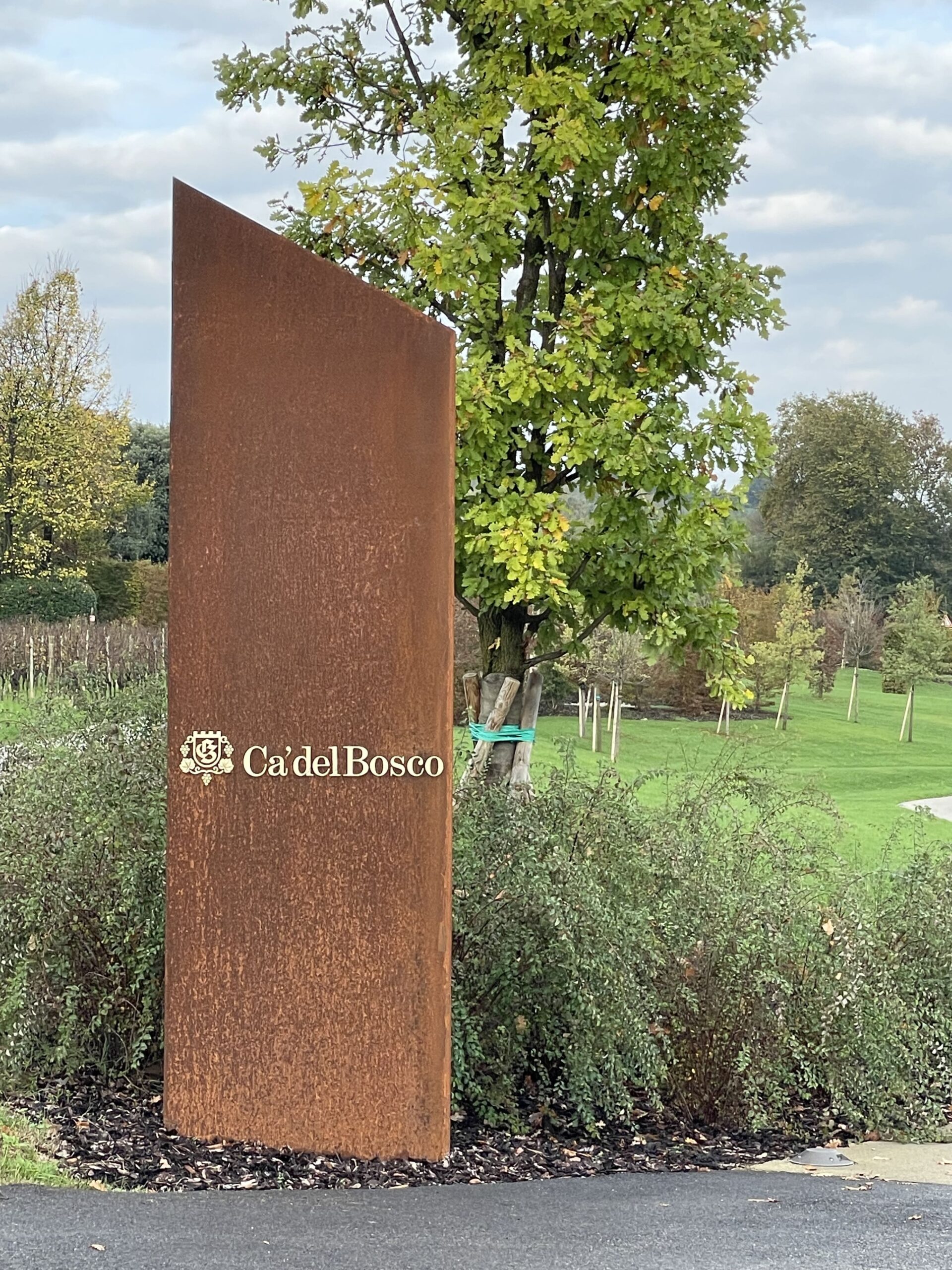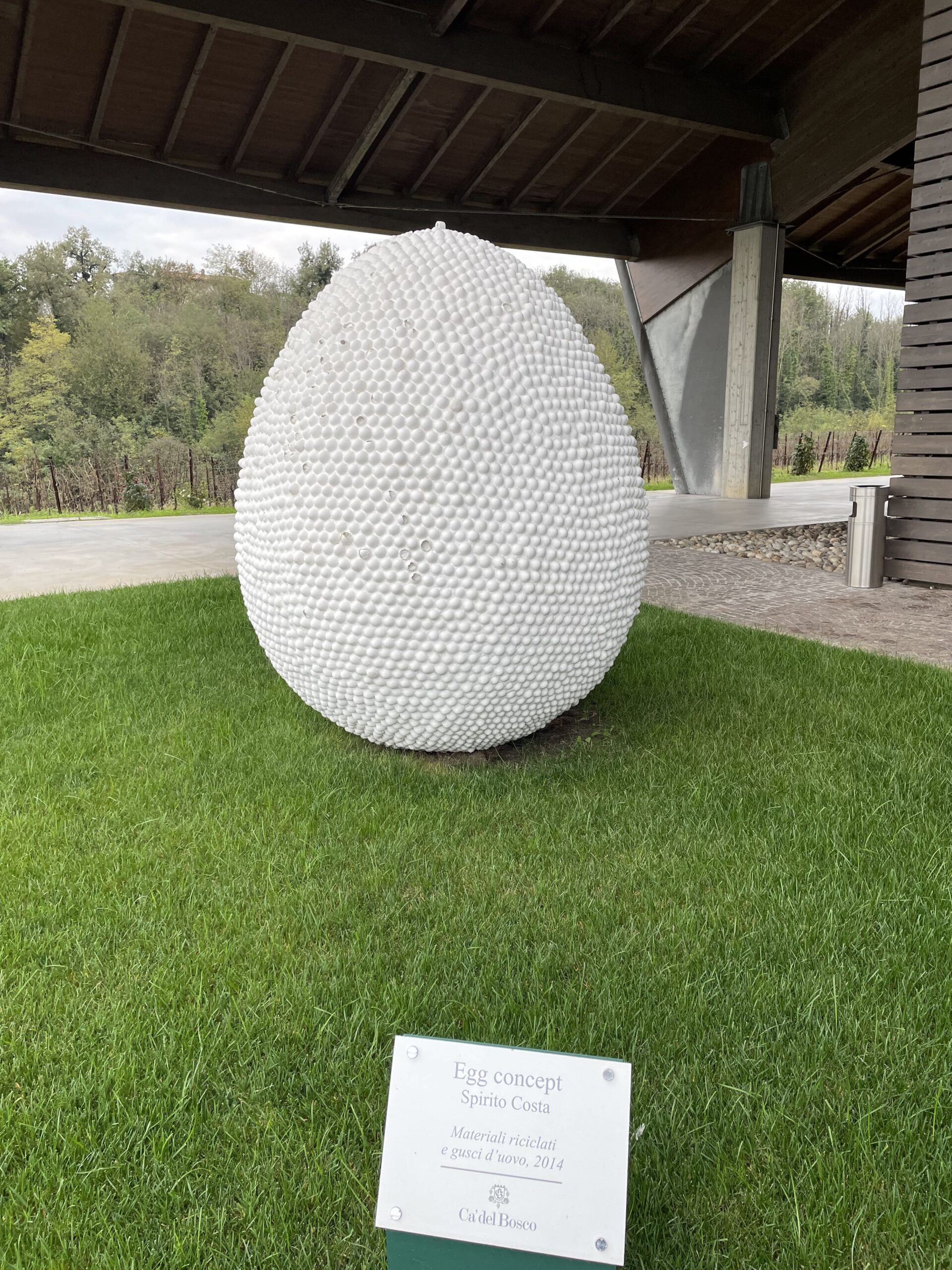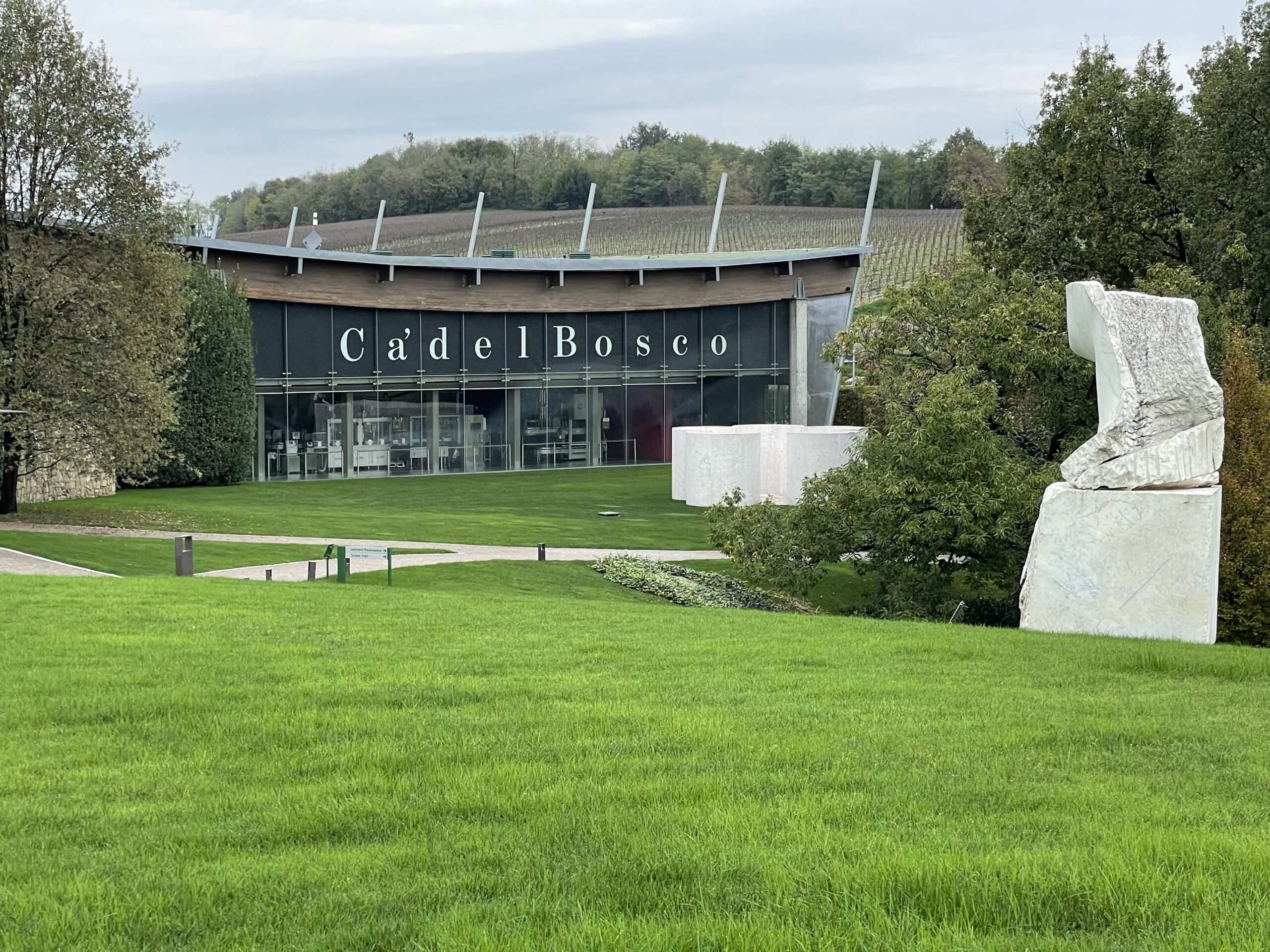 Debbo dire che questa volta il tecnico ha organizzato il viaggio veramente bene. Dopo aver lasciato i bagagli in albergo, grazie al suggerimento di una gentilissima receptionist, siamo andati a rifocillarci nel vicino Agriturismo Bertola, gestito da una famiglia che produce praticamente tutto a Km 0, compreso un ottimo Brut Metodo Classico che ha accompagnato i casoncelli di magro con crema di burro alla salvia ed il manzo all’olio di Bertola con polenta rustica ed olio del sebino. Rifocillati e riposati, la domenica ci siamo recati alla cantina che rappresenta la storia del Franciacorta: Ca’ del Bosco. Visto che ho iniziato con una citazione… proseguo. In questo luogo trovano un significato le parole di Luigi Veronelli, “Il vino è un valore reale che ci dà l’irreale”. Maurizio Zanella, il fondatore di Ca’ del Bosco, innamorato come la sottoscritta di arte e di vino ha fatto si, non tanto di allestire una collezione, quanto di ospitare nella sua campagna una serie di sculture di artisti di livello internazionale, opere che esprimono valori o concetti legati al ciclo dell’uva e alla natura.