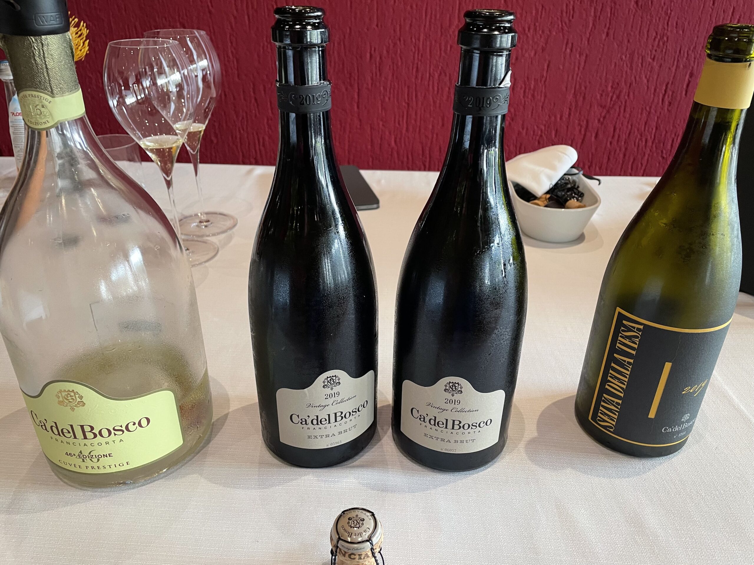 Siamo passati all’Extra Brut Vintage, uno dei migliori vini Franciacorta che abbia assaggiato. È un Millesimato che esprime la forza del Pinot Nero unito all’eleganza dello Chardonnay e del Pinot Bianco. Grazie ad un basso dosaggio e un lungo affinamento sui propri lieviti, riesce ad esaltare al meglio il suo potenziale, assicurando nel tempo grande ricchezza e complessità. Al naso presenta note di mela e pera. Al palato è secco e fruttato, con note fresche e minerali. Il finale è pulito e decisamente secco, caratterizzato da note di agrumi e nocciola. Terzo ed ultimo lo Chardonnay in purezza “Selva della Tesa”, affinato in botti di rovere dove svolge la fermentazione alcolica e dove poi rimane a maturare per 9 mesi sui lieviti. Alla vista si presenta di colore dorato vivido ed al naso complesso con sentori di pera, frutta tropicale, scorza d’agrumi e nocciole con un sottofondo speziato, in cui domina la vaniglia. Al palato è avvolgente e gustoso, rotondo, di buona struttura, con un buon equilibrio fra sapidità e acidità.